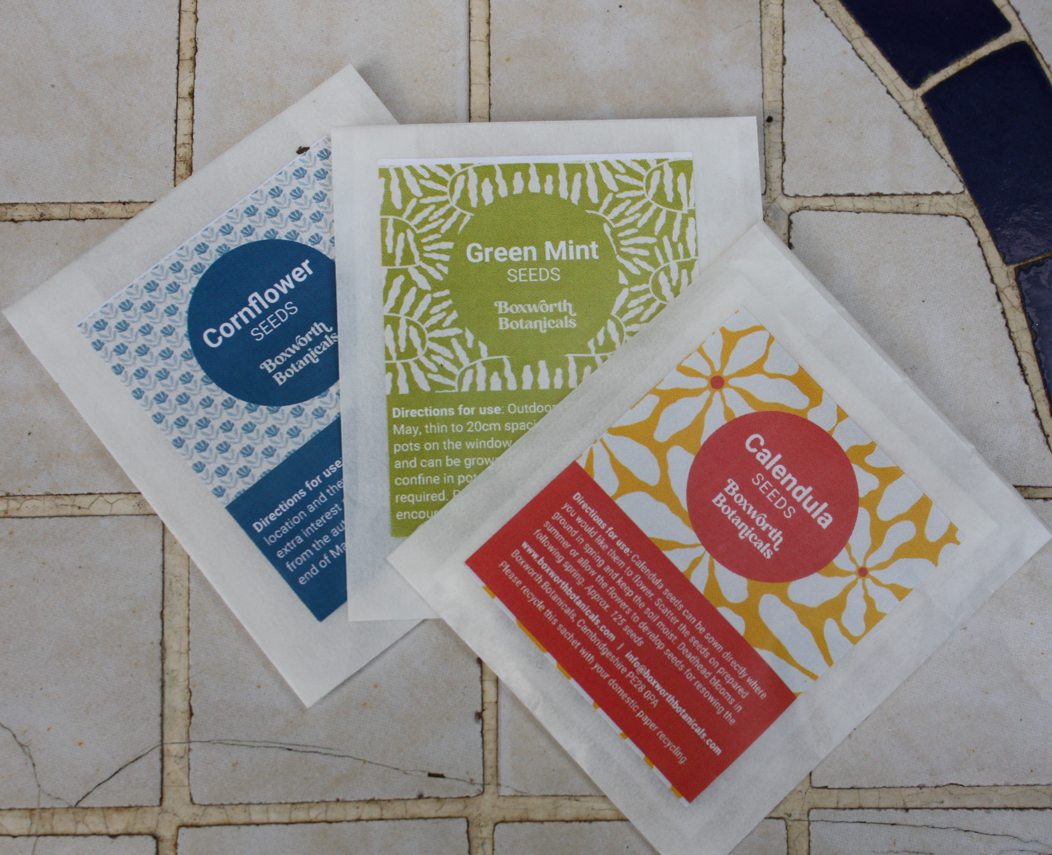 Our New Potting Shed Treats Box is full of gardening must haves! It includes our cleansing soap for working hands and the nourishing herbal gardeners hand cream with Patchouli and Rosemary for fixing dry hands or tiny cuts. We've also added one of our new lip butters, Orange and Mango, made with skin regenerating sea buckthorn and calendula, with castor oil and uplifting sweet orange. But our new gift tin is also filled with seeds, ready to sow, Green Mint, Cornflowers, Wild Chamomile and of course Calendula! And practical biodegradable plant labels and pencil.